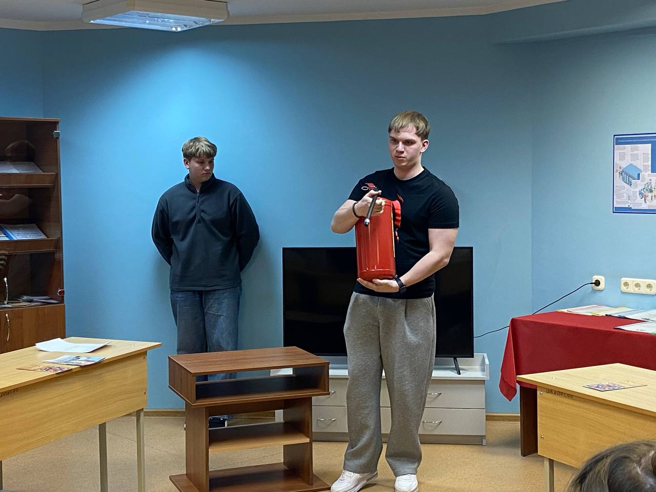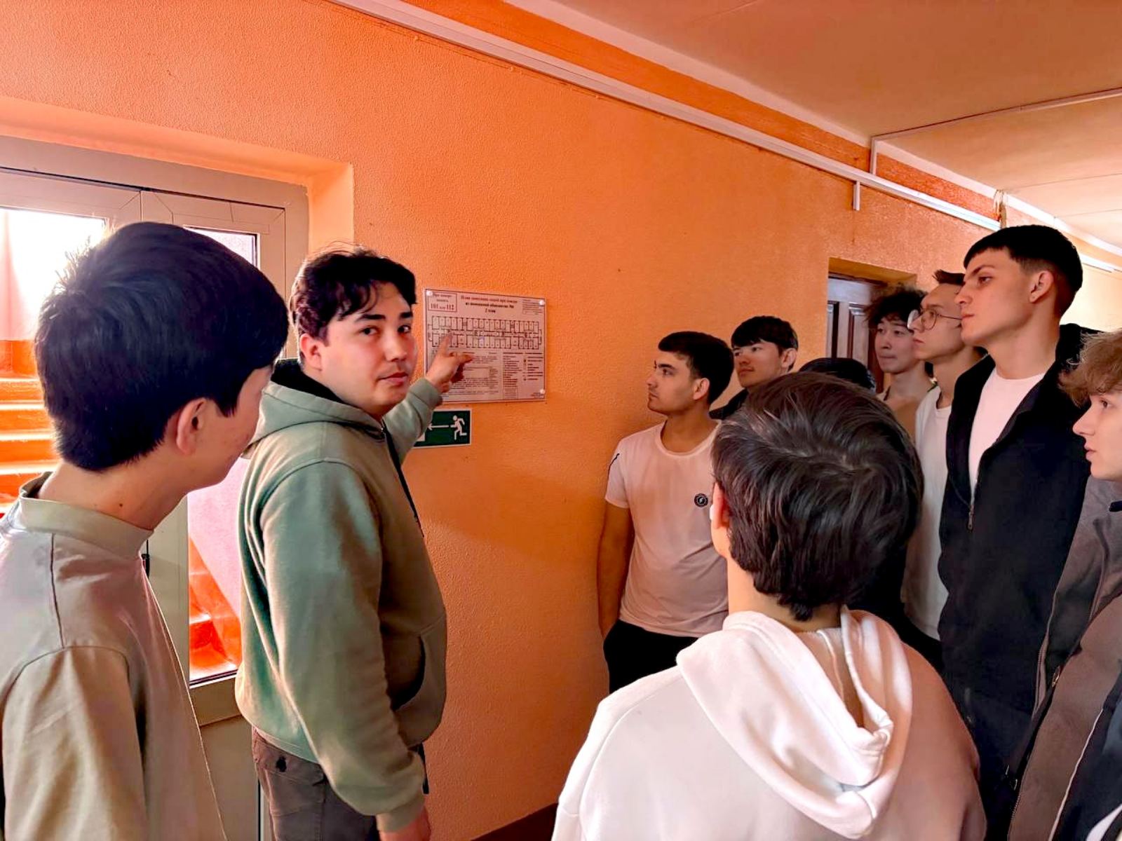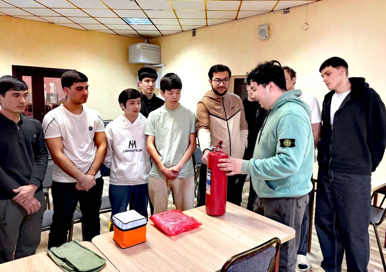 Перед началом которой председатель совета общежития Гулмырадов Аллан провёл беседу, в ходе которой ребята повторили способы эвакуации, первичные средства пожаротушения, затем студенты рассмотрели и смогли их изучить более детально. Вместе ребята провели обследование противопожарного состояния своего общего дома. Они знают, где находятся все необходимые средства пожаротушения и план эвакуации.