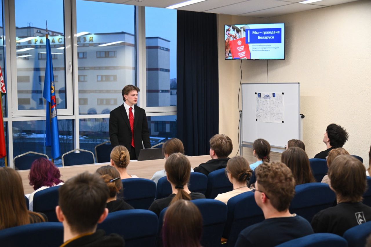 10 марта в общежитии №5 прошла диалоговая площадка «Мы - граждане Беларуси», посвященная Дню Конституции Республики Беларусь. Спикером выступил председатель студенческого совета Марченко Владислав.