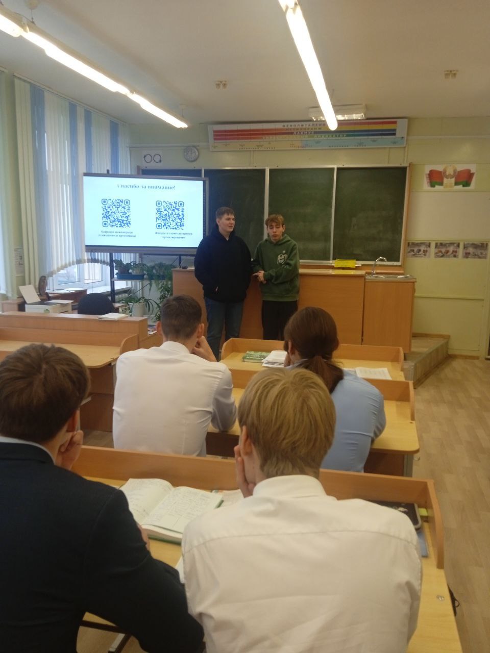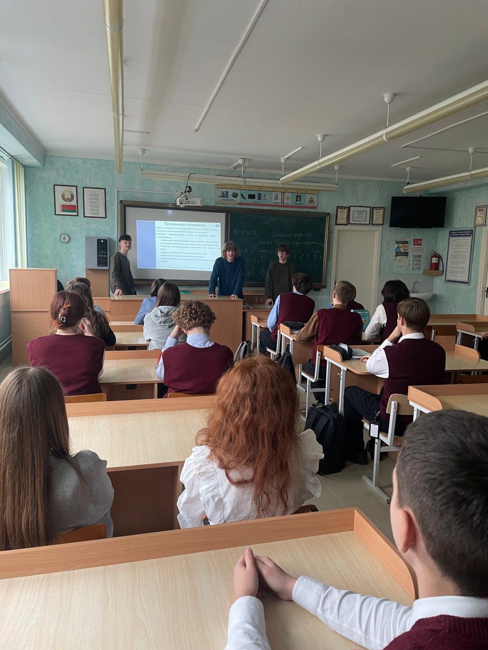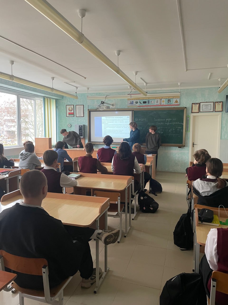 Встреча с абитуриентами была проведена 21 ноября 2025 г студентами кафедры ИПиЭ Головачевом Иваном Олеговичем и Мовкало Матвеем Ивановичем в ГУО «Гимназия имени Янки Купалы» с учащимися 10 и 11 классов. На мероприятии присутствовал 41 человек. В присутствии преподавателя математики Чак Елены Николаевны и преподавателя химии Алисейко Ирины Владимировны было подробно рассказано о: