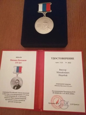 В начале 2026 года преподаватель кафедры В. М. Недобой был номинирован на национальную литературную премию "Поэт года" за 2025 год, которая была учреждена Российским союзом писателей. В числе номинантов он был награждён медалью "Михаил Булгаков 135 лет". Медаль «Михаил Булгаков 135 лет» по результатам оценки Большого жюри вручается поэтам за вклад в развитие русской литературы. Эта награда подчеркивает важность поэтического творчества и его связь с традициями русской классической литературы, к которым обращается булгаковское наследие. Церемония награждения состоялась в Центральном доме литераторов в Москве в преддверии Всемирного дня поэзии. Награду Виктору Михайловичу вручил президент Общероссийской общественной организации «Российский союз писателей» Д. В. Кравчук.