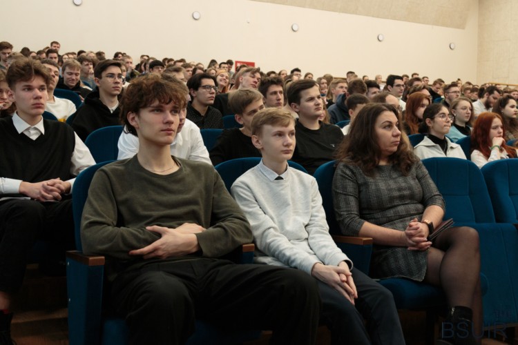 На лекцию в актовом зале собрались и студенты, и сотрудники БГУИР, среди которых немало учеников Владимира Лабунова.