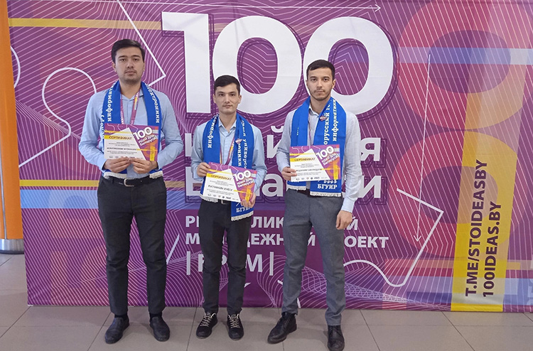 Студенты БГУИР Сайфиддинов Самариддин Хусниддин угли, Рустамов Илёс Иннатуло угли, Исматиллаев Музаффар Шухрат угли представили для участия в Республиканском молодёжном проекте «100 идей для Беларуси» разработку «Система контроля и оказания поддержки иностранным студентам».