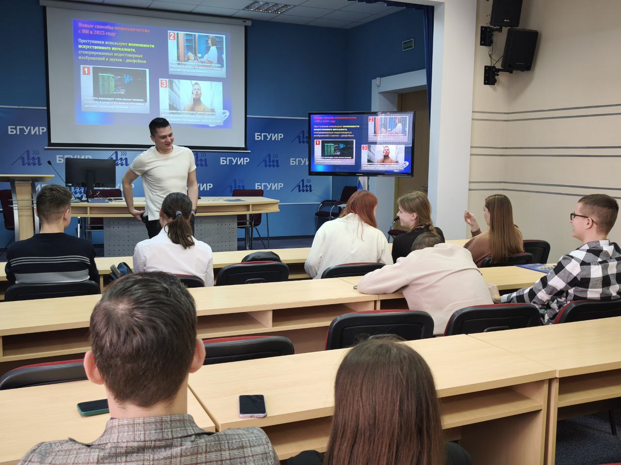 В рамках проекта также прошли занятия для студентов университета. Волонтёры БГУИР Александр Дубешко, Вячеслав Ветошкин и Илья Лайша провели встречи по принципу «равный обучает равного» на тему «Цифровая грамотность и кибербезопасность — студентам».