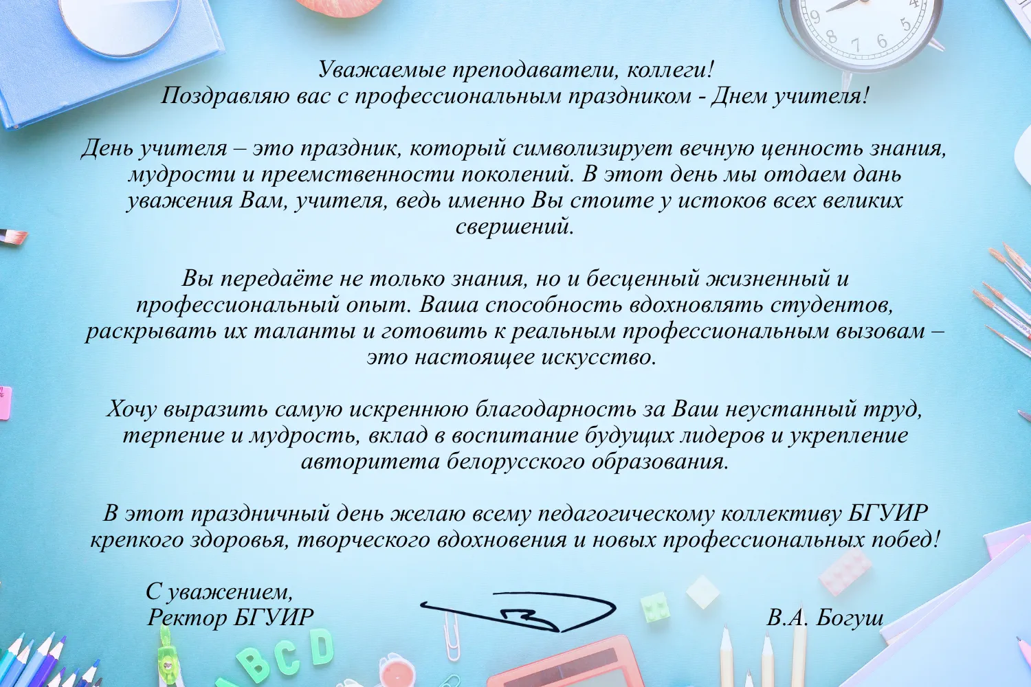 Поздравление с Днём учителя от ректора БГУИР