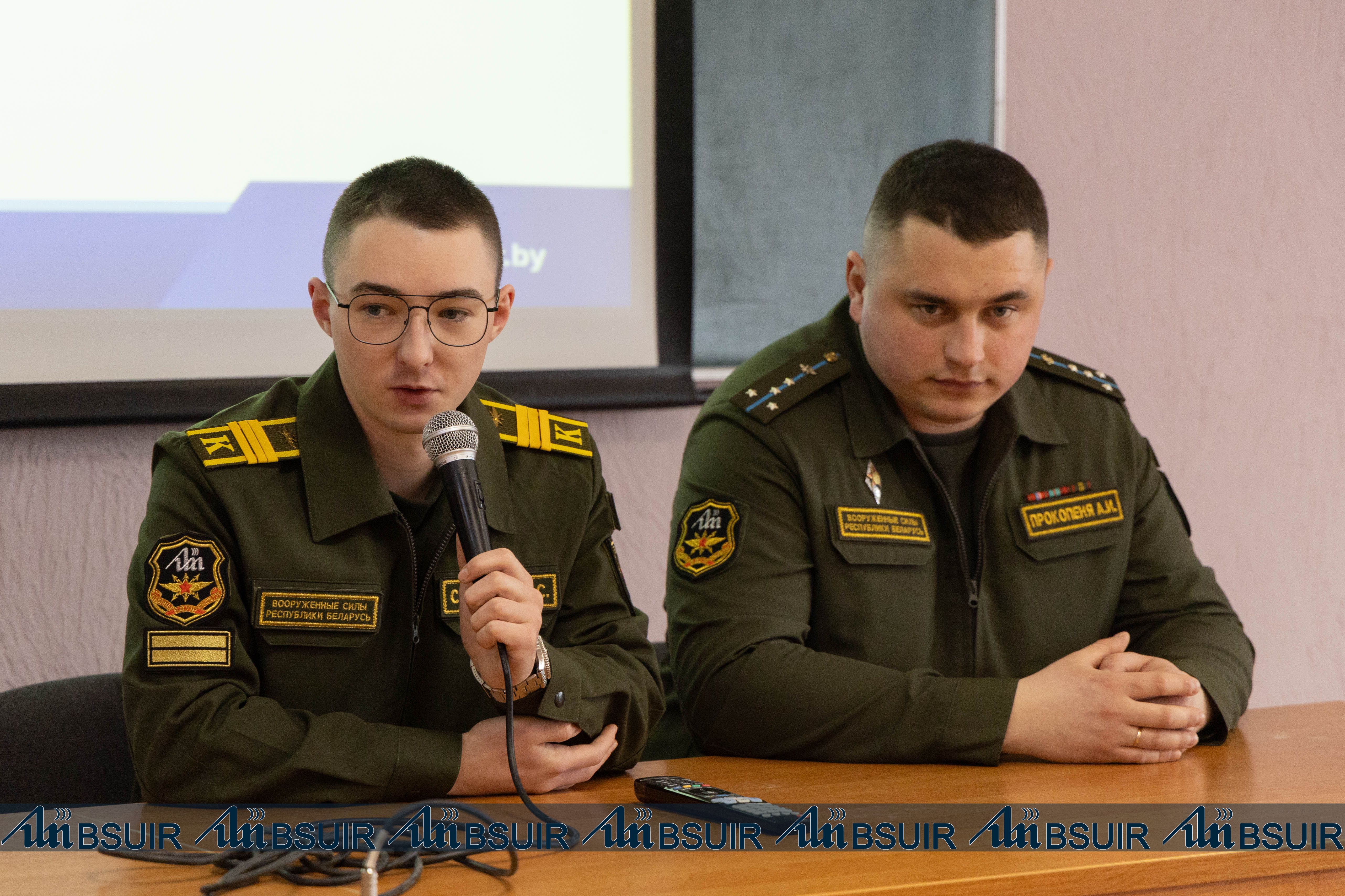 На факультете радиотехники и электроники состоялась диалоговая площадка «К защите Отечества готов!». Мероприятие посетили гости с военного факультета. Курсант второго курса батальона курсантов Дмитрий Соколов рассказал о своей семье, выборе обучения в БГУИР по военному направлению, плотном графике занятий и стремлении достигать новых вершин. Курсовой офицер первого курса батальона курсантов, капитан Алексей Прокопеня рассказал о различиях между всеобщим призывом и профессиональной контрактной армией, сроках службы, условиях проживания военнослужащих и социальных гарантиях после окончания службы.