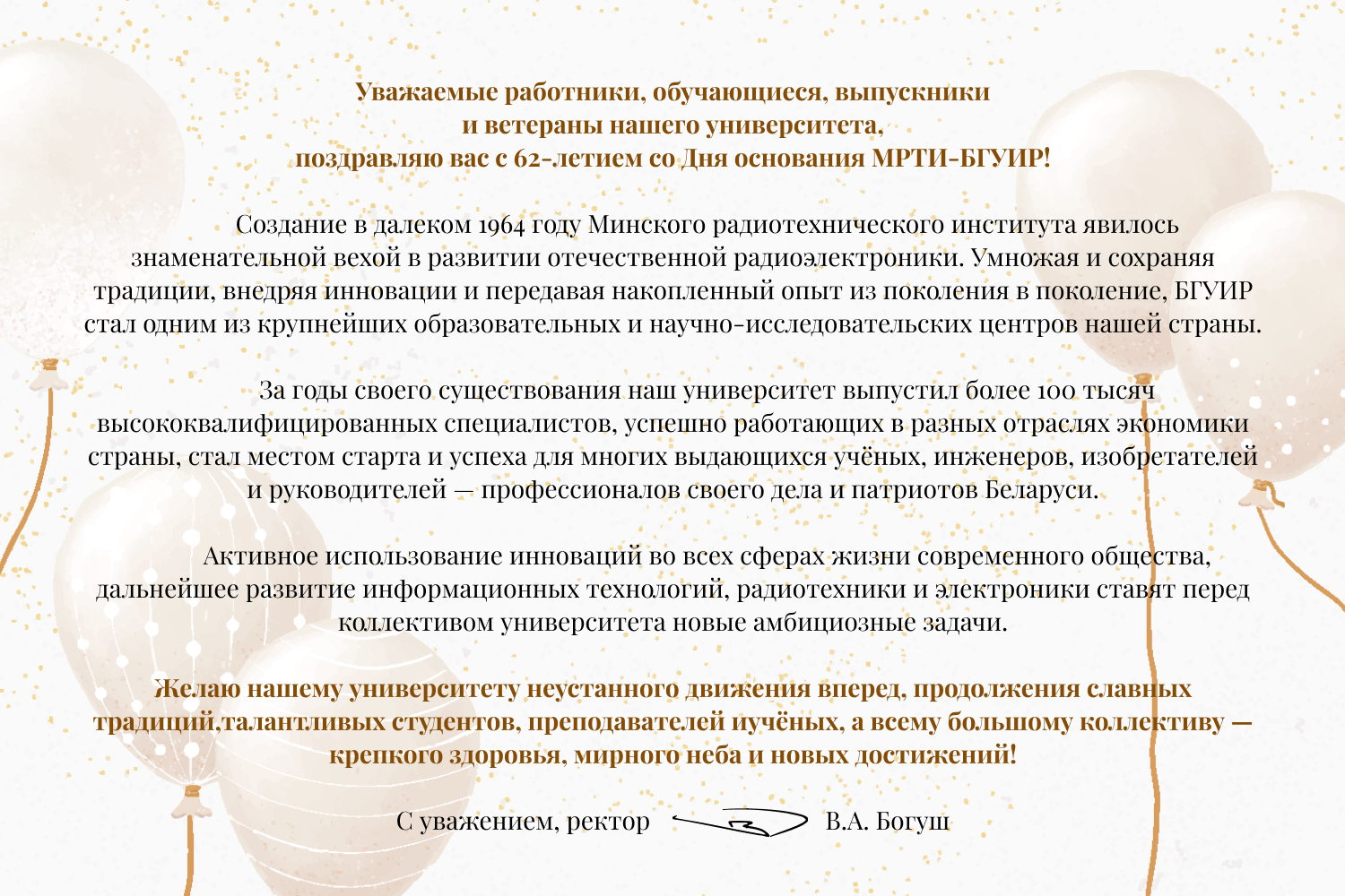 Поздравление ректора с 62-летием МРТИ-БГУИР