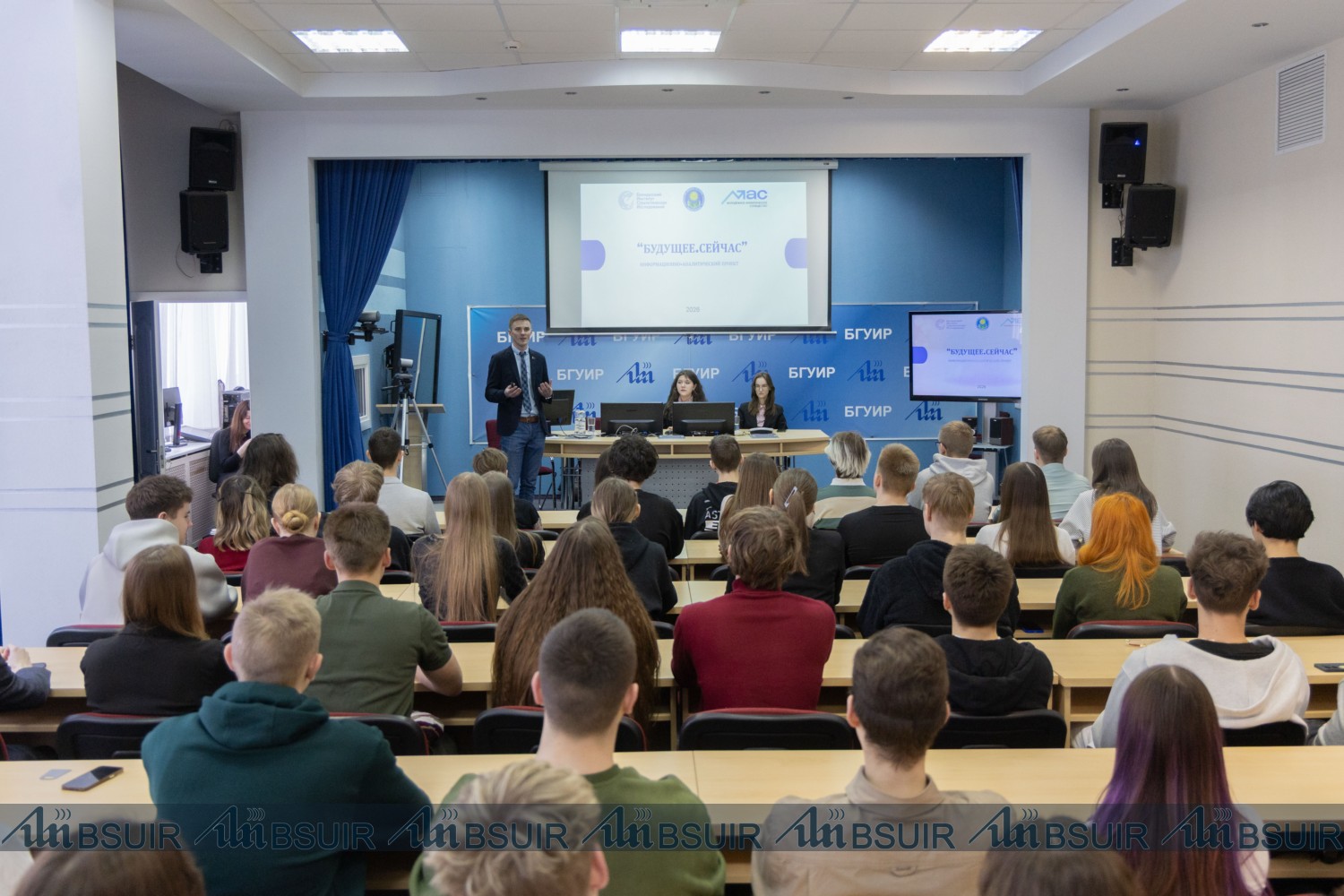 25 февраля в БГУИР прошёл информационно-аналитический проект «Будущее.Сейчас», в рамках которого Молодёжное аналитическое сообщество совместно с аналитиками Белорусского института стратегических исследований обсудили со студентами развитие Республики Беларусь.