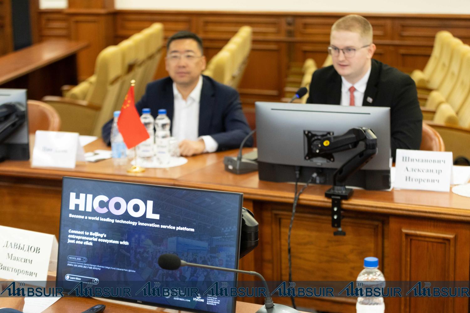 Представители БГУИР рассказали об университете, о направлениях работы, разработках на данный момент и о международном сотрудничестве университета. Делегация ООО «СИНОМАЧБЕЛ» презентовали проект HICOOL – международную платформу для предпринимателей.