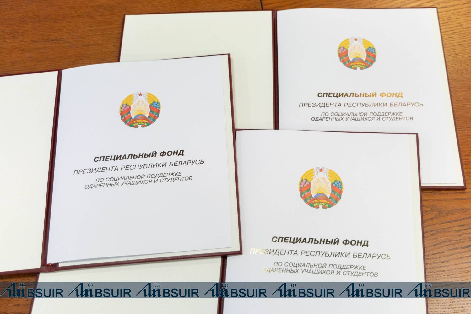 Студентам Евгению Биюмену, Георгию Говору, Татьяне Ковалевской, Сергею Романовичу вручены свидетельства специального фонда Президента Республики Беларусь по социальной поддержке одаренных учащихся и студентов о назначении стипендии Президента Республики Беларусь.