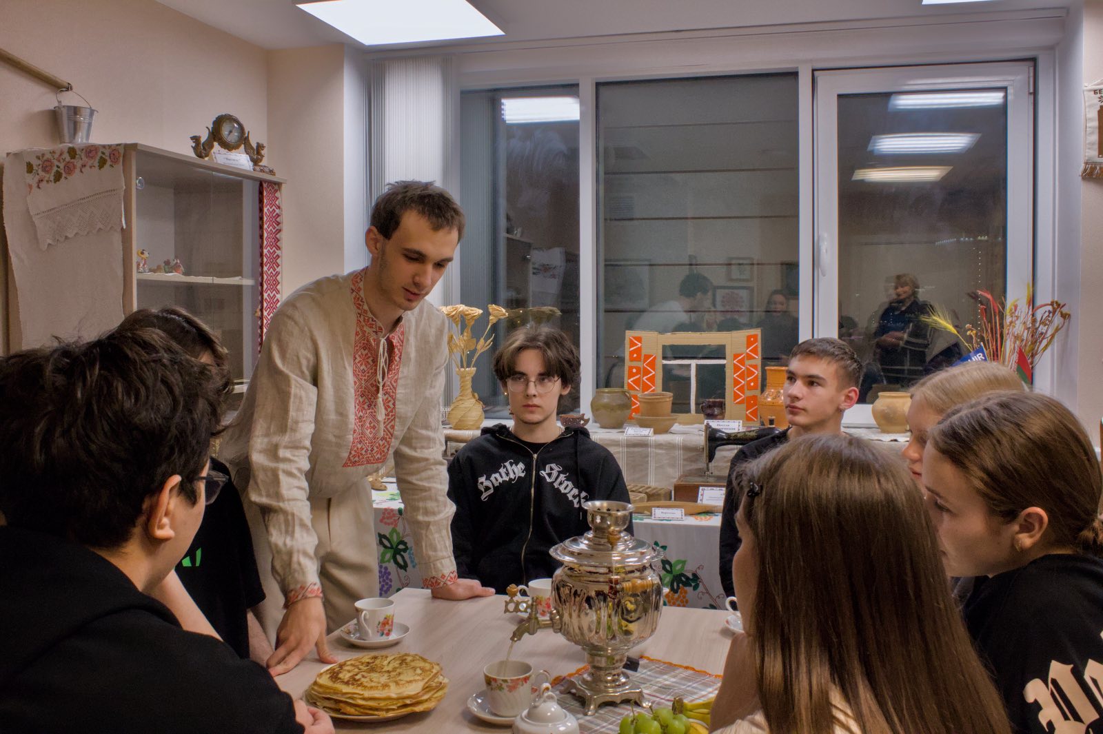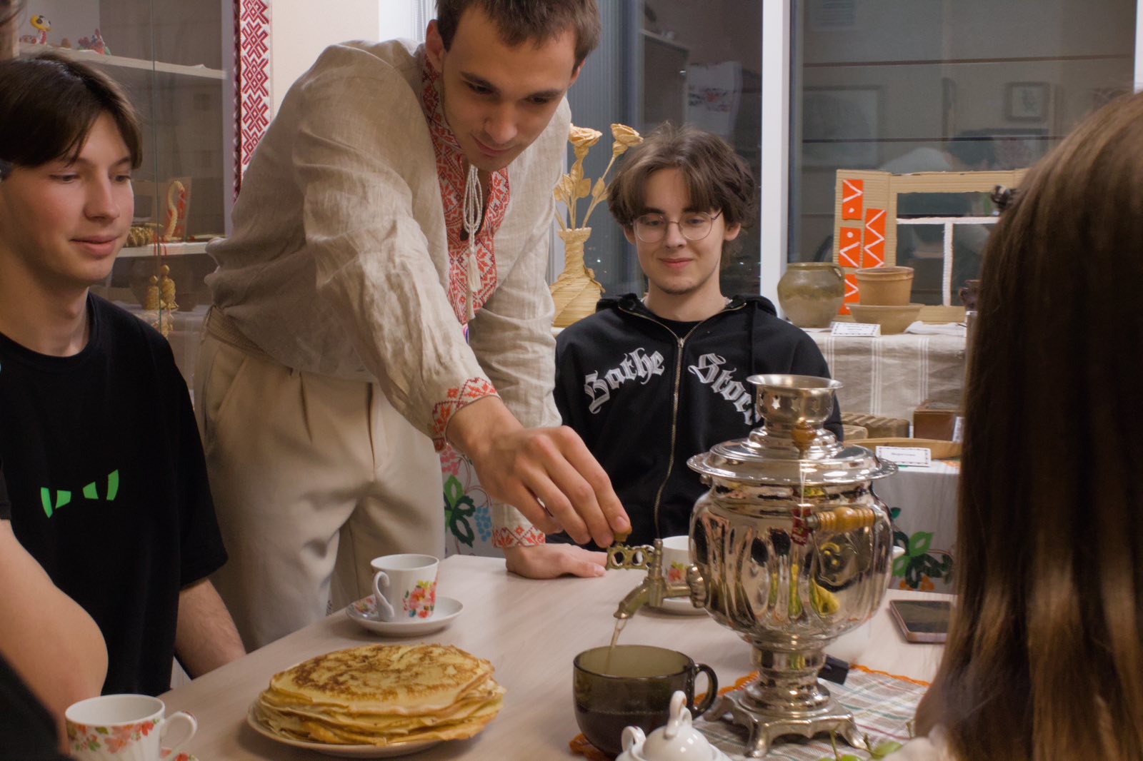 19 января в общежитии №5 прошел вечер отдыха «У самовара за чашкой чая». Пожалуй, это неосознанная радость от того, что за столом сидят хорошие люди, что разговор течет мирно и степенно, что есть такая возможность вырваться из суеты, забыть о всех делах и просто выпить чаю. Да еще и с блинами собственноручной выпечки.